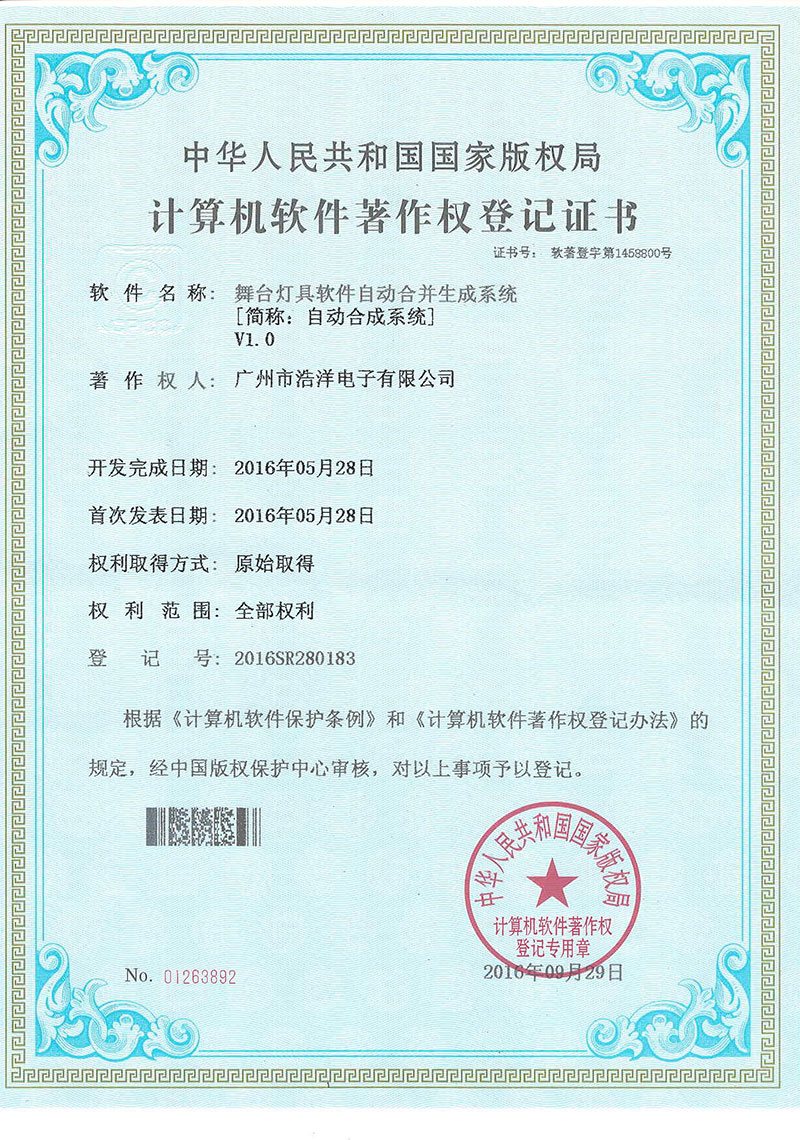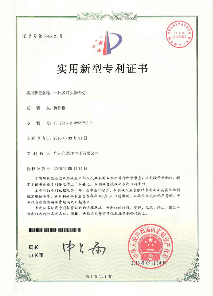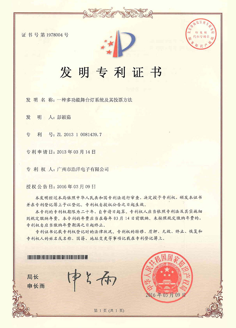 依托100多人的核心研發(fā)團(tuán)隊(duì)、5000多平方米廣東省演藝燈光工程(研發(fā))中心,以及持續(xù)的巨額研發(fā)投入,公司及子公司累計(jì)取得了“發(fā)明專利”、 “外觀設(shè)計(jì)專利”、“實(shí)用新型專利”、“計(jì)算機(jī)軟件著作權(quán)登記”等境內(nèi)外專利300余項(xiàng),專利保有量行業(yè)領(lǐng)先!