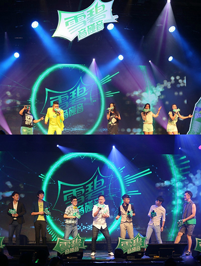 當(dāng)晚,來自全國各地的“雪碧音碰音” 全民賽歌榜冠軍選手與網(wǎng)絡(luò)海選選手在經(jīng)過了三天的特別訓(xùn)練后開唱,初生牛犢他們在臺上遇到新晉歌王林俊杰,碰撞出激動人心的火花!不管是款款深情的情歌,還是律動十足的快歌,在浩洋燈光的詮釋之下,選手們都十分享受當(dāng)晚的舞臺,完美的發(fā)揮讓金曲歌王林俊杰稱贊不已。