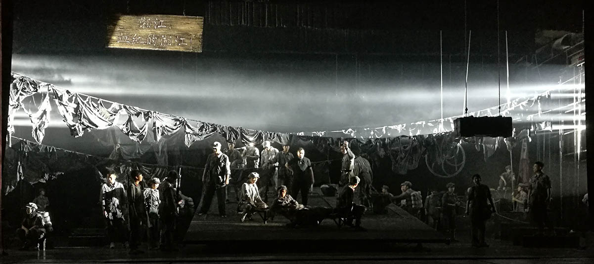 《從湘江到遵義》以重溫長征精神,重鑄中國人信仰之魂為指導(dǎo)思想,立足于以現(xiàn)代人的思考,以現(xiàn)代戲劇的方式進行現(xiàn)代表達。以“湘江慘敗”“翻越老山界”“通道轉(zhuǎn)兵”“黎平會議”“強渡烏江天險”“挺進遵義城,召開遵義會議”為敘事支點和基本背景,藝術(shù)表現(xiàn)湘江戰(zhàn)役后,紅軍將士面臨多路強敵圍追堵截、內(nèi)部思想不統(tǒng)一等困境,在迷惘、焦灼、痛苦中憑借堅定理念信念艱難探索,最終迎來中國革命偉大轉(zhuǎn)折——遵義會議召開。該劇以長征中極為獨特極為嚴峻的一段——由湘江到遵義為創(chuàng)作背景,成功地展現(xiàn)了這一特定時段的重大歷史事件和豐富的思想內(nèi)涵。