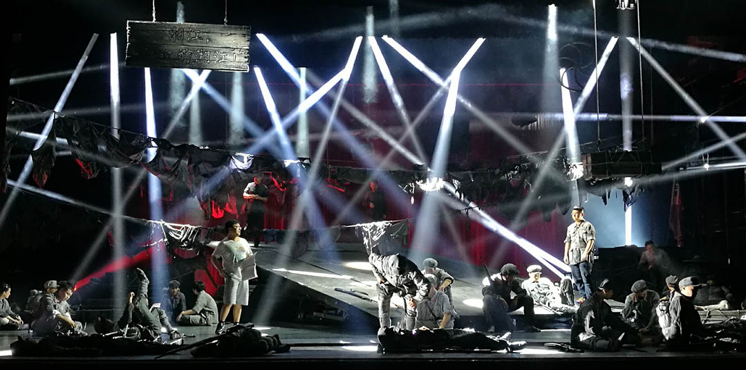為紀念紅軍長征勝利80周年,軍委政治工作部話劇團聯(lián)手中共成都市委宣傳部創(chuàng)作排演的敘述體話劇《從湘江到遵義》9月28日在京成功首演。該劇由著名導(dǎo)演宮曉東執(zhí)導(dǎo),特邀國內(nèi)著名燈光設(shè)計邢辛擔(dān)任燈光設(shè)計、著名編導(dǎo)孫涓涓任形體設(shè)計。浩洋電子革命性劇院式電腦燈V1000P、內(nèi)置兩套可任意切換光學(xué)系統(tǒng)的三合一全能王電腦燈G12 HYBRID和頂級高顯色性電腦搖頭切割燈V3000P等一大批高品質(zhì)特寶麗燈光傾情獻力,為該劇成功首演保駕護航。