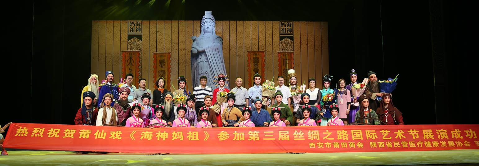 現(xiàn)代的燈光音響,色彩艷麗的戲裝,清悠婉轉(zhuǎn)的唱腔,古今融合的莆仙戲在2016年第三屆絲綢之路國際藝術(shù)節(jié)散發(fā)奪目光彩,在場觀眾如癡如醉地欣賞《海神媽祖》劇目,沉醉在媽祖娘娘正能量的無私精神里。