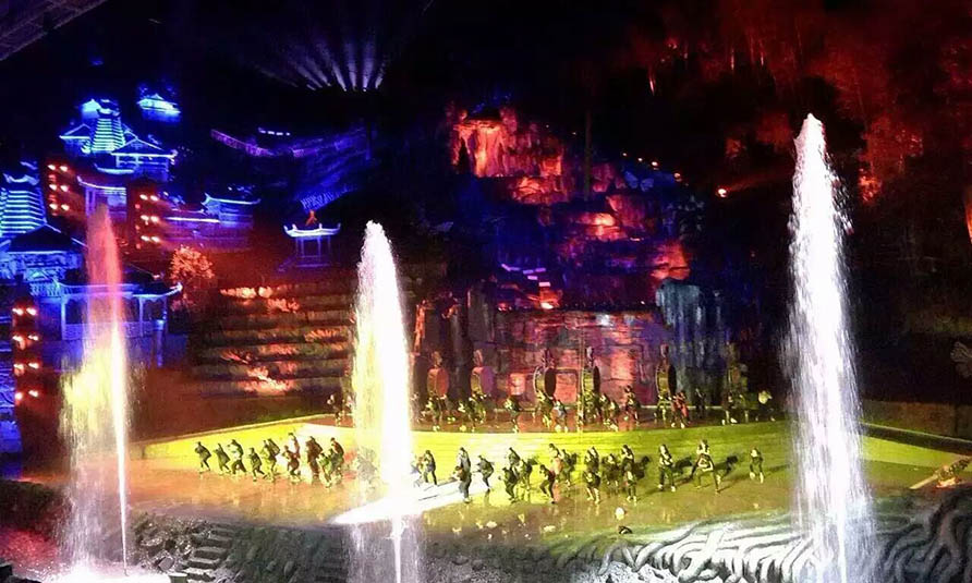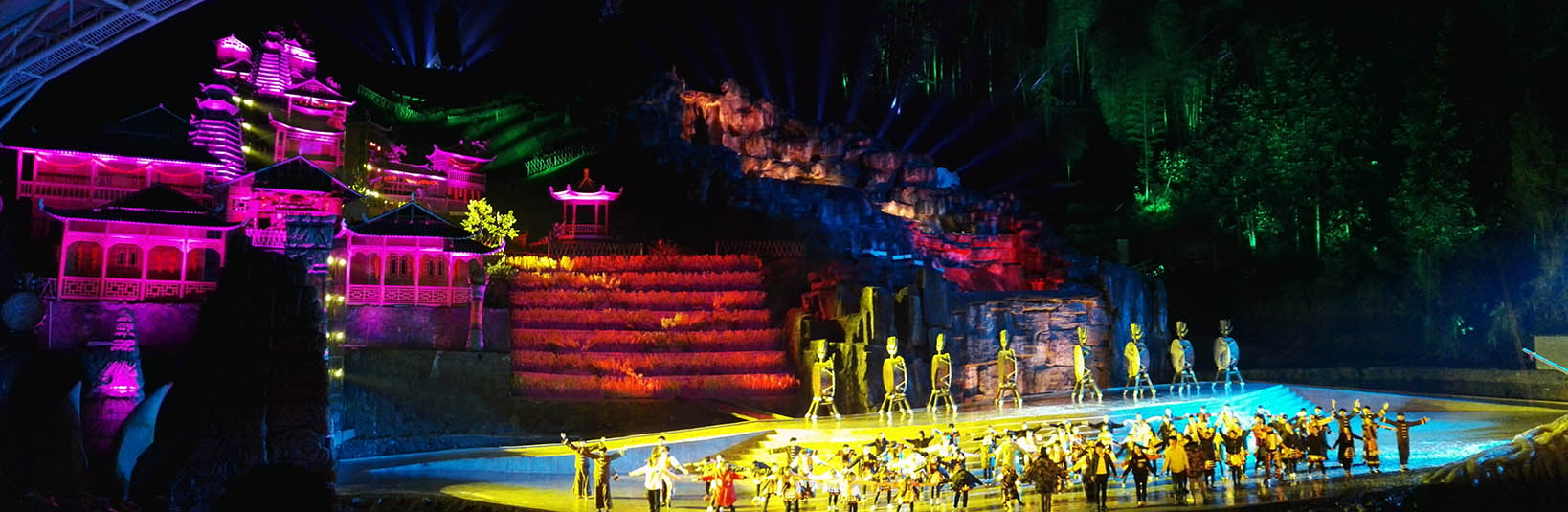 浩洋電子通過極富創(chuàng)意的燈光設(shè)計(jì)和表現(xiàn)力十足的燈光應(yīng)用,準(zhǔn)確地描繪出侗寨的文化特性,將燈光演繹與當(dāng)?shù)氐纳剿L(fēng)景完美融合,共同構(gòu)成一個(gè)演出的整體,為《薩瑪》增添了新的藝術(shù)形態(tài),衍生出了新的看點(diǎn),成為貴州省內(nèi)極具民族文化特色的旅游演藝新標(biāo)桿!