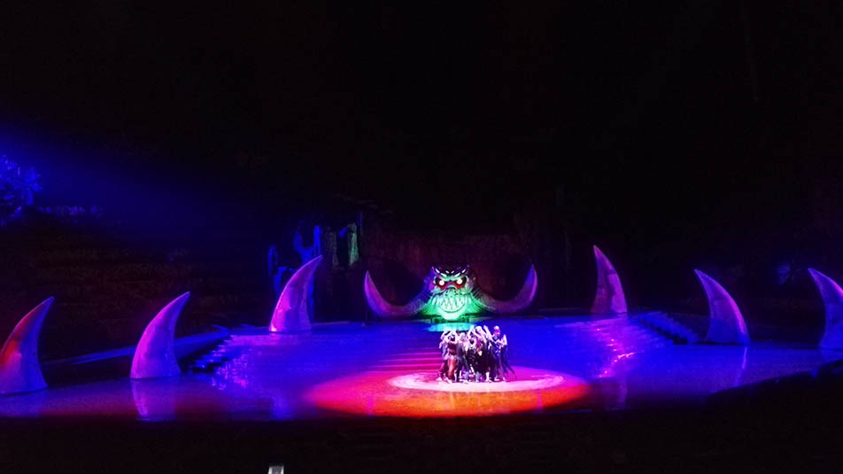 《薩瑪》以梵凈山下的侗族村寨、山水、竹海為背景,講述了發(fā)生在遠(yuǎn)古侗族山寨里女主角“薩瑪”身上的凄美愛情故事。靠山面水、高度潮濕的演出環(huán)境,對燈光設(shè)備的質(zhì)量提出了極高的要求。該項(xiàng)目共使用浩洋電子旗下特寶麗(Terbly)品牌大功率LED切割燈GL-6、LED搖頭染色燈GLW190Z、搖頭圖案燈V1501S、追光燈FS800M、條形染色燈PB8D、及沉水式LED變色燈等合計(jì)近600臺(tái)。