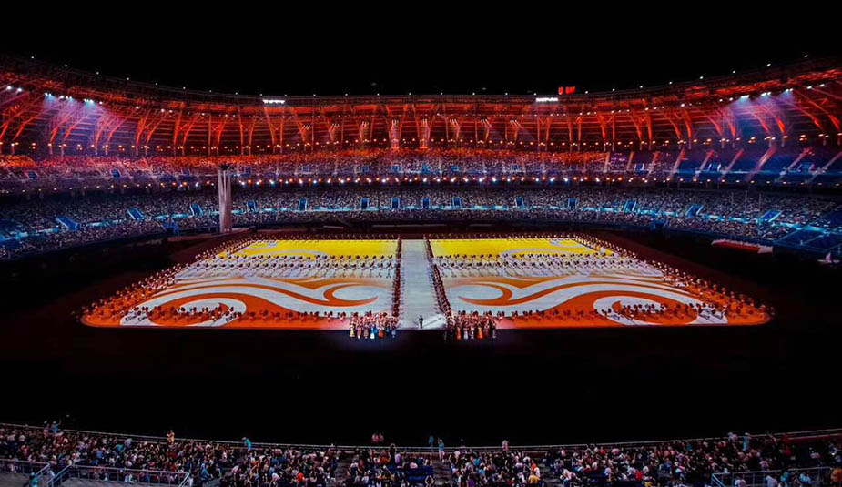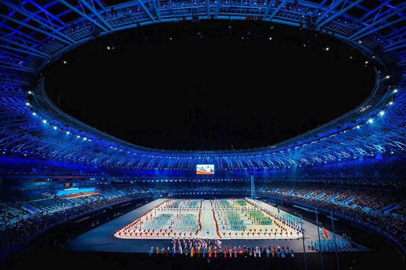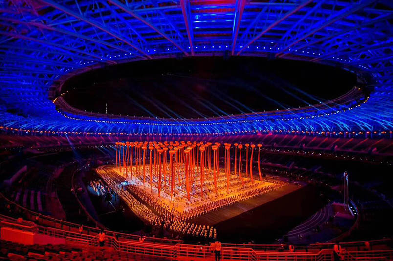 開幕式的亮點,一是3D地面投影和人完美配合的視覺效果;二是體育和群眾元素的相結(jié)合;三是以天津元素講述中國故事、展示中國氣派。這其中,最大亮點是開幕式上全程全屏激光投影的使用,加上與表演者的動態(tài)有機結(jié)合,以及與場外高大建筑燈光秀的合成,讓本屆全運會的開幕式在畫面上呈現(xiàn)出如夢如幻的美妙感覺。
