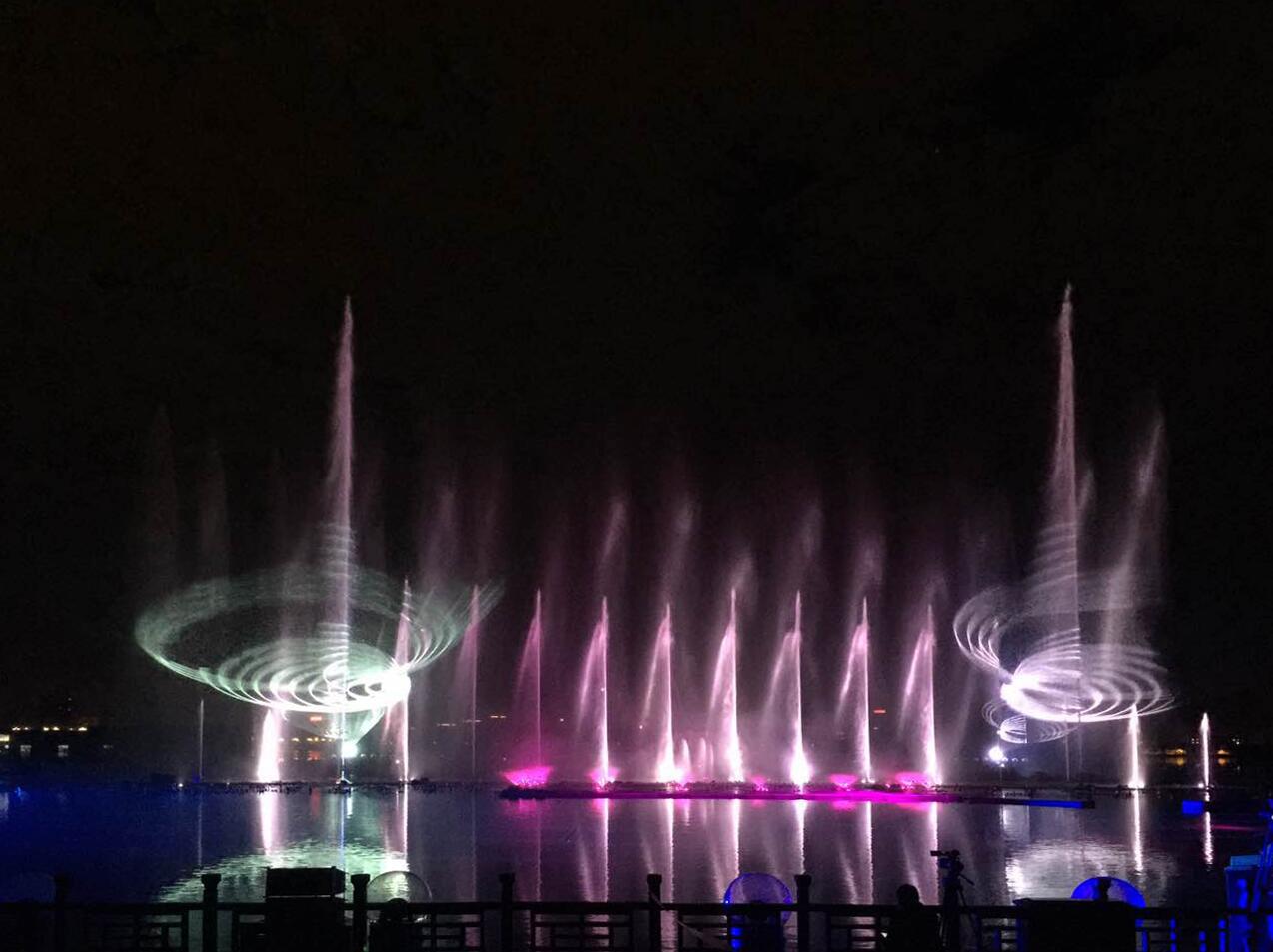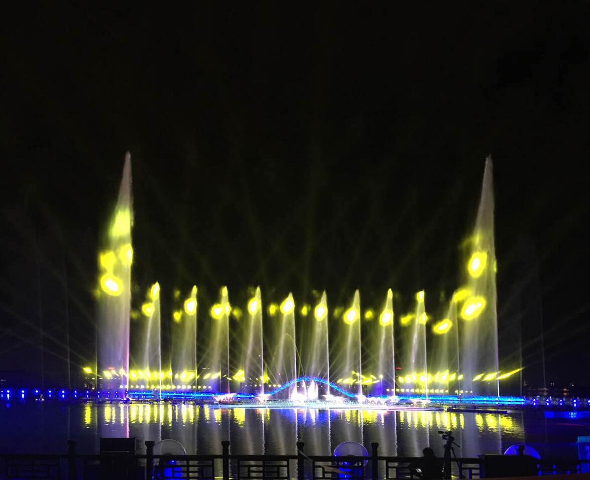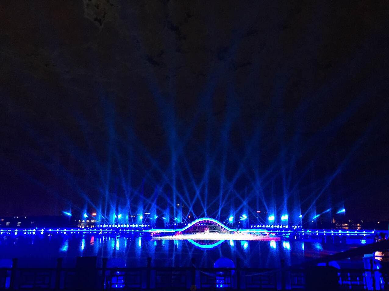 演出位于銀川閱海灣的一個核心區(qū),其擁有約3000㎡的漂浮平臺作為主表演區(qū)域,包含了機(jī)械、主體噴泉、投影激光,還有燈光音響等一系列設(shè)備,前方還設(shè)有890㎡的水下舞臺作為演員的主舞臺。