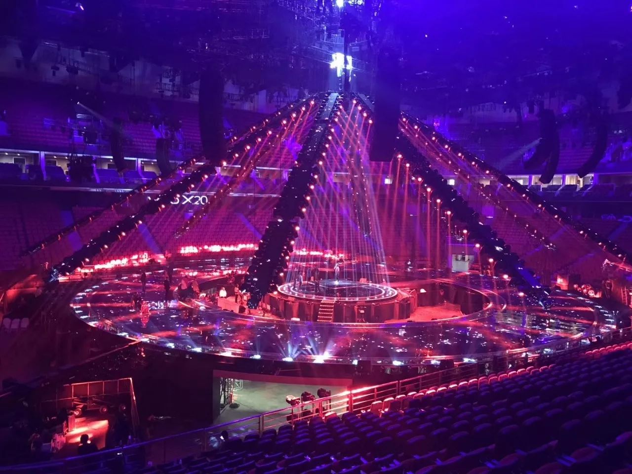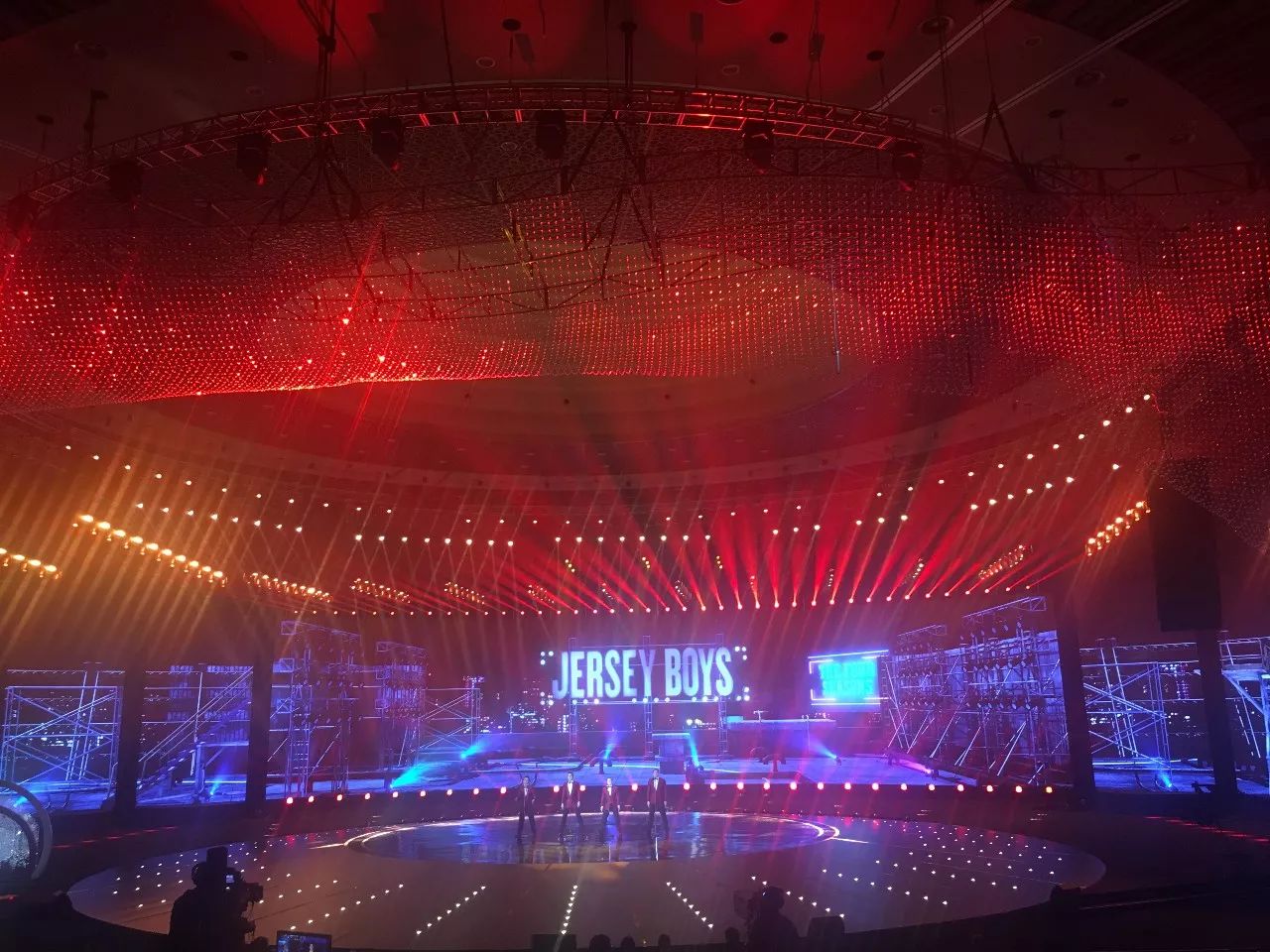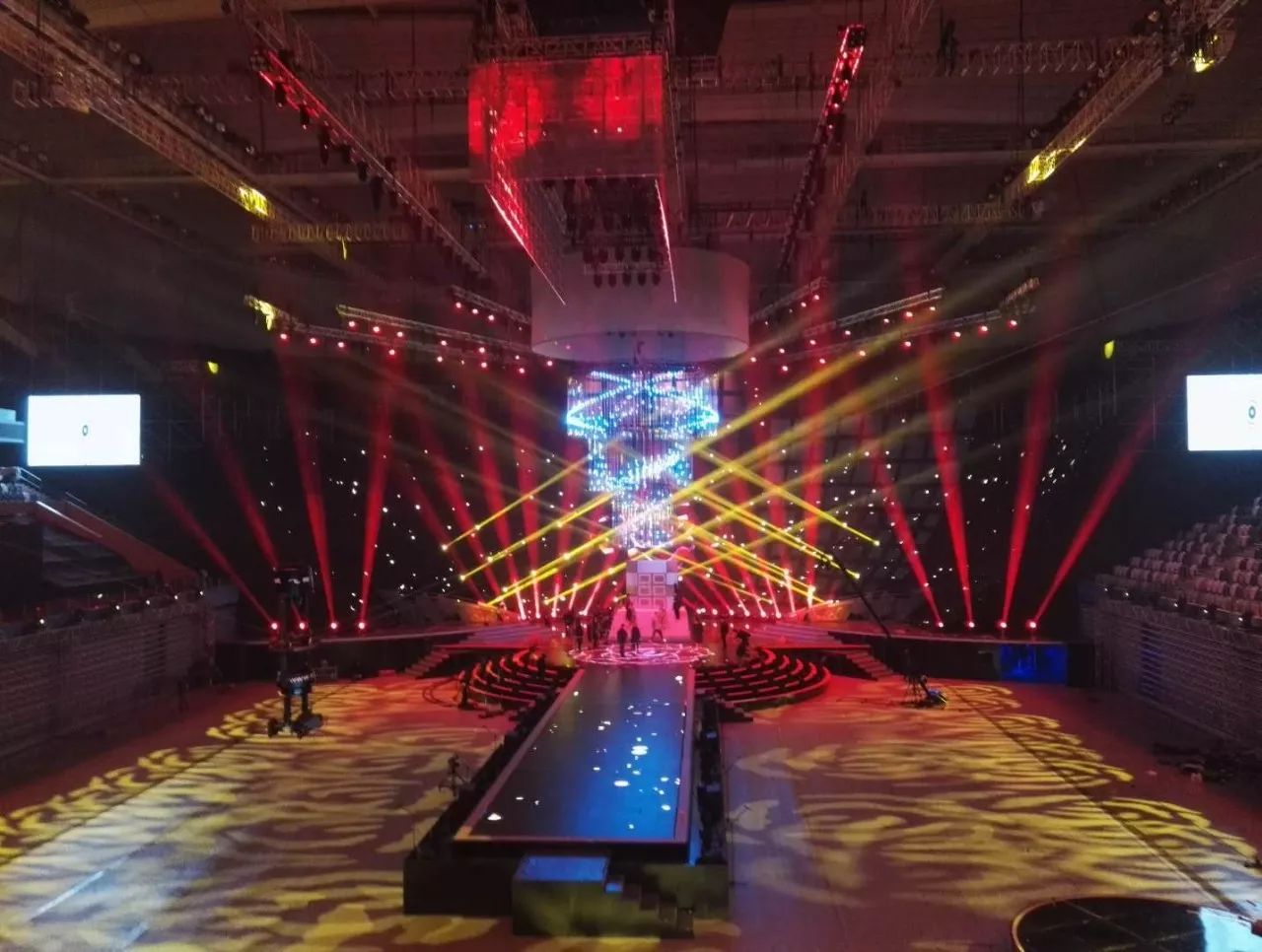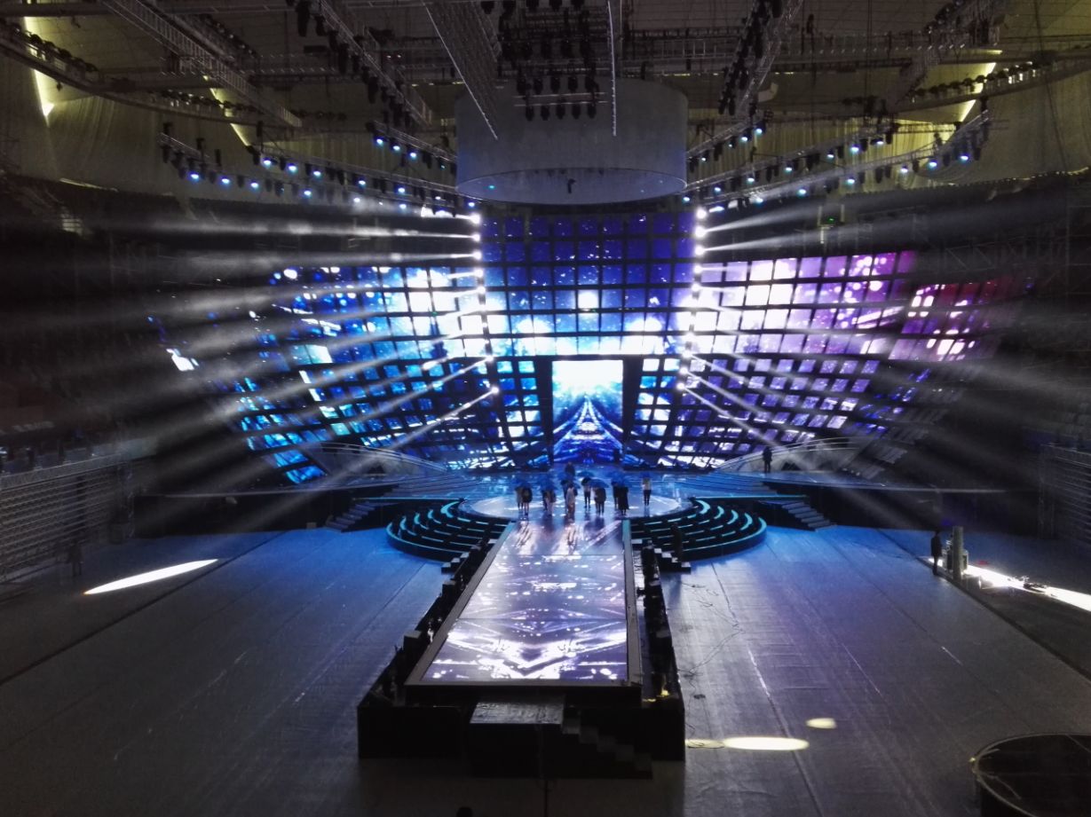 追求新亮點(diǎn)的江蘇衛(wèi)視今年刷新了演唱會(huì)舞臺(tái):四面臺(tái)升級(jí)為360度全景巨型圓舞臺(tái),給觀眾帶來前所未有的視覺沖擊;機(jī)械燈臂組成變形空間站,天幕地屏配合猶如浩瀚宇宙。根據(jù)比利時(shí)的燈光設(shè)計(jì)師Ignace介紹,去年所有構(gòu)造和場(chǎng)景都是為扁長(zhǎng)型舞臺(tái)而設(shè)計(jì),今年所有設(shè)計(jì)都是為了讓觀眾感受到前所未有的一種“沉浸感”,“(每一個(gè)區(qū)域)觀眾到舞臺(tái)距離一致,這和去年有很大的不同,觀眾的感受獨(dú)具一格,是宇宙的感覺?!?