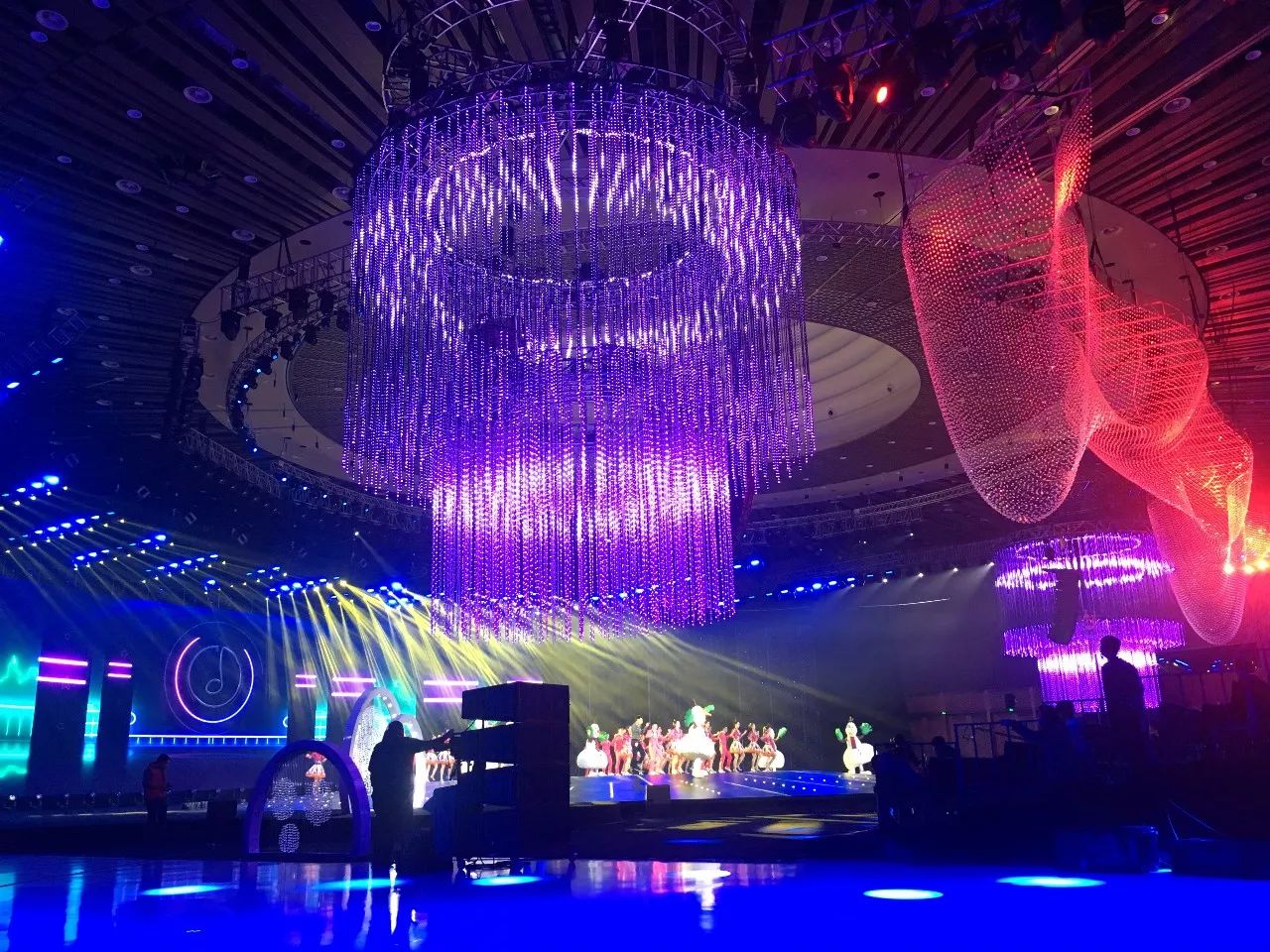2018年,央視繼續(xù)不走尋常路,首次走出演播廳,舉辦地落戶了雁棲湖,并于2017年12月31日20:00在CCTV1、CCTV3、CCTV4三臺(tái)聯(lián)播。此次由北京東語華星文化藝術(shù)有限公司傾力打造的晚會(huì),主題為《啟航2018》,云集了眾星加盟,在舞臺(tái)上詮釋“國(guó)”“家”“情”“美”。另外,晚會(huì)實(shí)現(xiàn)了娛樂與文化的融合,通過不同的表演形式將2017年的國(guó)家大事件在舞臺(tái)上表現(xiàn)出來,浩洋電子專業(yè)舞臺(tái)燈光產(chǎn)品光束燈V2000B、LED搖頭染色燈GLW7QZ、光束燈PT189B等也為晚會(huì)提供有力的燈光支持,為全國(guó)觀眾帶來一場(chǎng)漲知識(shí)又有視覺享受的新年晚會(huì)。