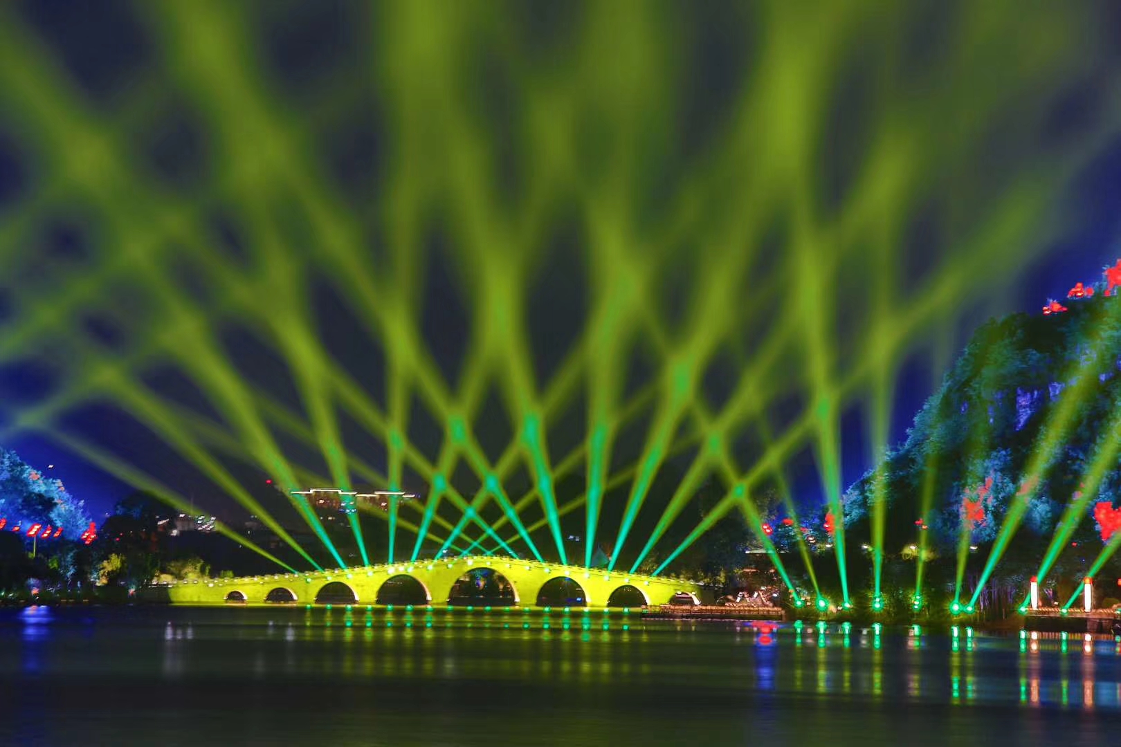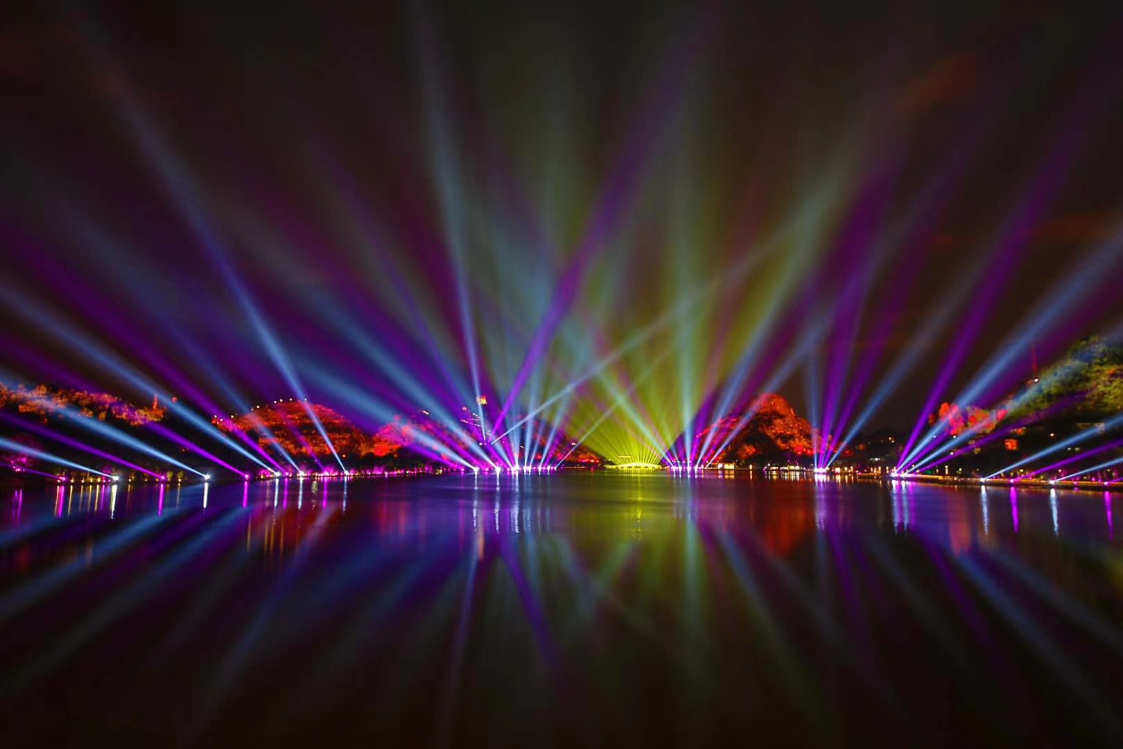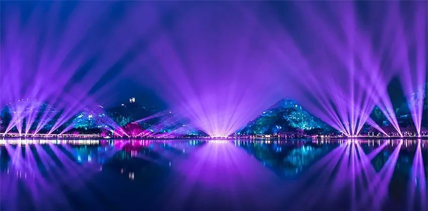 據(jù)悉,該項目在傳統(tǒng)照明的基礎(chǔ)上,巧妙地利用了雷達動過捕捉技術(shù)、外網(wǎng)視頻交互技術(shù)與光影配合,同時在游覽動線上設(shè)計了互動投影裝置和LED成像矩陣裝置,展現(xiàn)出特殊的震撼性視覺體驗效果等,描繪出一幅美麗的山水畫卷。山水湖景燈光秀《明鑲西秀 意寫江南》這一場利用現(xiàn)代智能燈光設(shè)計與技術(shù),音樂與現(xiàn)代光影配合的極致演出,打造出具有安順特色的夜景風(fēng)姿,成為了貴州安順虹山湖一張靚麗的名片。