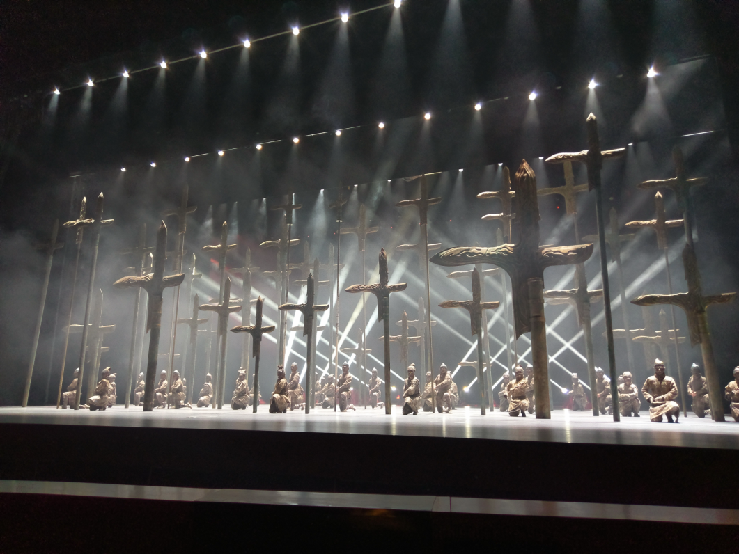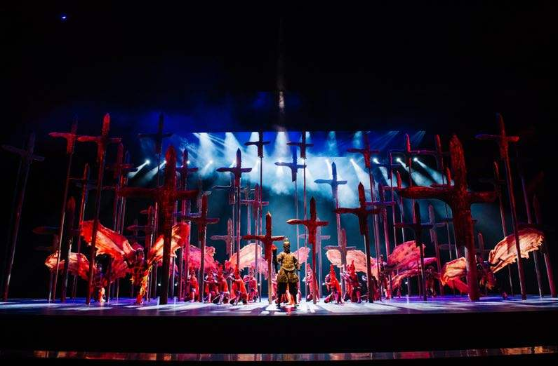 在《秦》秀燈光效果中,總制作著名燈光設(shè)計(jì)沙曉嵐采用獨(dú)特的燈光風(fēng)格,時(shí)而黑白調(diào),時(shí)而金碧輝煌,將大秀的感情色彩表現(xiàn)得淋漓盡致,再現(xiàn)大秦帝國的恢弘。