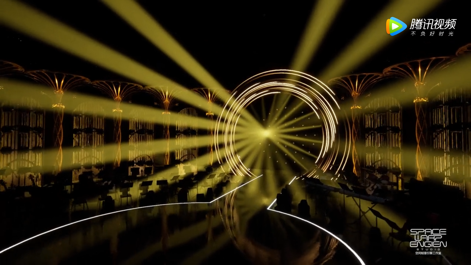 作為本季舞美的情懷加分項,極具節(jié)目標識性的圓環(huán)赫然矗立中央,在全新加入的流線燈光的營造下,更具超現(xiàn)代科技氛圍。而圓環(huán)兩邊,順次排開十二根金色珠光圓柱,柱體之間陳列的旋轉(zhuǎn)體則是本季創(chuàng)新的重點。該旋轉(zhuǎn)體分為三面,其中兩面為亞克力三角細柱,柱上貼有LED數(shù)碼條,當歌手演唱時,旋轉(zhuǎn)體可作為渲染燈光的介質(zhì),承接多種曲風(fēng)的氛圍效果;另外一面則為矩形燈陣。當浩洋燈光亮起時,貫徹了一如既往的高端視感,打造了新一輪的視覺盛宴,為觀眾帶來璀璨奪目的視覺享受。