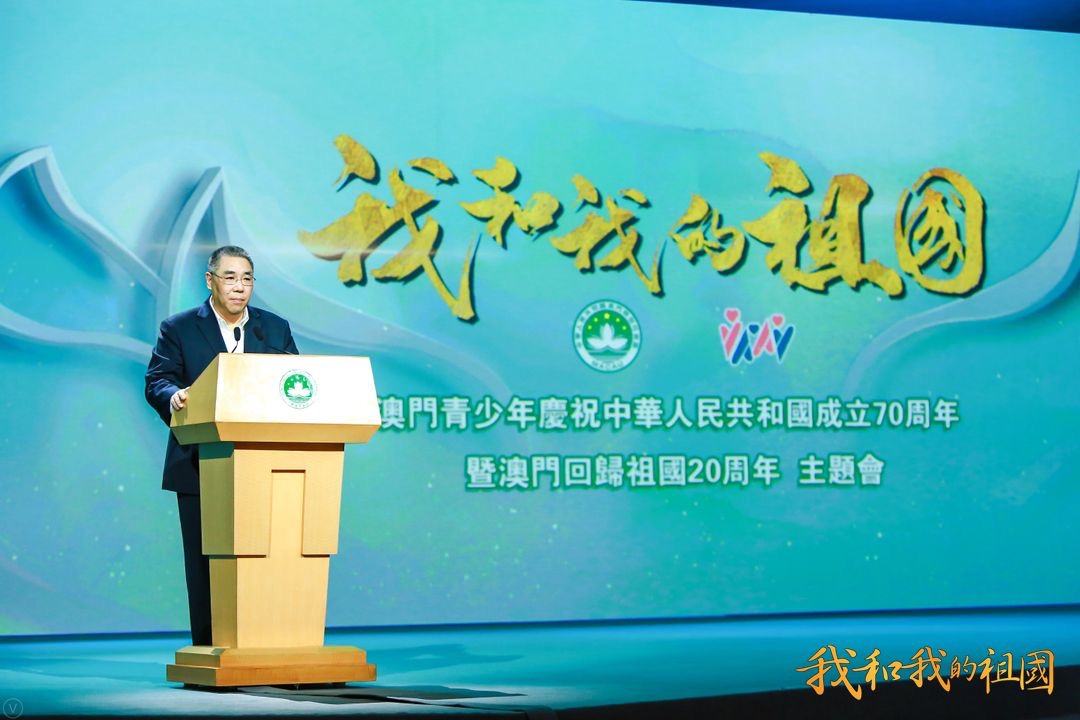 8月3日下午, 為慶祝中華人民共和國成立70周年和澳門回歸祖國20周年,由澳門特別行政區(qū)政府、中央人民政府駐澳門特別行政區(qū)聯(lián)絡(luò)辦公室、澳門各界青年組織活動籌備委員會聯(lián)合主辦,教育部、中華全國青年聯(lián)合會共同協(xié)辦的以“我和我的祖國主題會”在澳門綜藝館舉行。