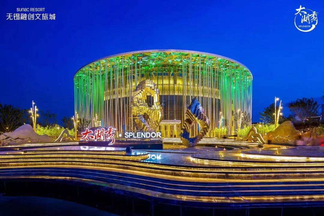 太湖秀劇場的創(chuàng)作靈感來自于江南特色的“竹林”,外圍是365根層疊錯(cuò)落的仿竹鋼立柱,屋頂使用不規(guī)則的三角形金屬百葉板進(jìn)行裝飾。3萬平米的劇場內(nèi),直徑16米的主舞臺可實(shí)現(xiàn)360°旋轉(zhuǎn)、2米升降和10°傾斜,空中1800㎡的360°環(huán)形LED大屏嚴(yán)絲合縫,配合11臺高速布景吊機(jī)、22個(gè)高速雜技卷揚(yáng)機(jī)、500多個(gè)高空舞美吊點(diǎn)打造沉浸式的視覺盛宴,此外還有先進(jìn)的高空3D噴泉和舞臺水處理系統(tǒng),可以實(shí)現(xiàn)干舞臺和水舞臺的快速切換。