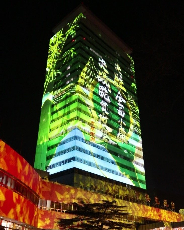 2020年的視覺(jué)創(chuàng)意燈光秀內(nèi)容共分為四個(gè)篇章,畫(huà)面制作融合了媒體科技、國(guó)事熱點(diǎn)、以及中華民族春節(jié)的傳統(tǒng)元素。畫(huà)面色彩多樣、內(nèi)容豐富、創(chuàng)意獨(dú)特、配合樓體上的投影設(shè)備及室外照明燈具營(yíng)造了一場(chǎng)充滿春節(jié)喜悅氣氛的視覺(jué)創(chuàng)意燈光秀。