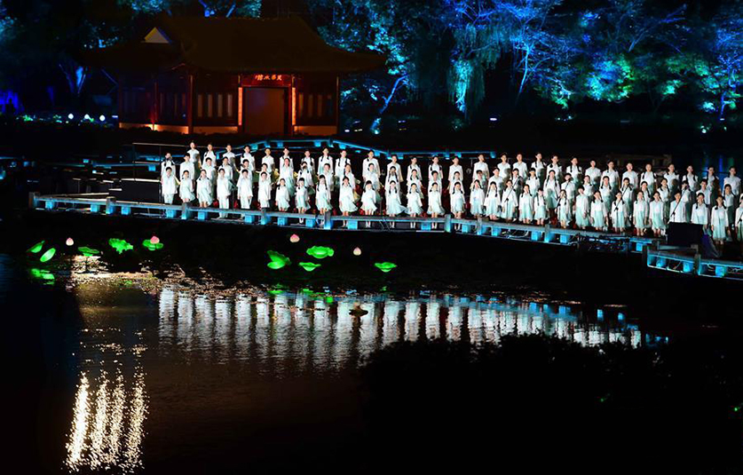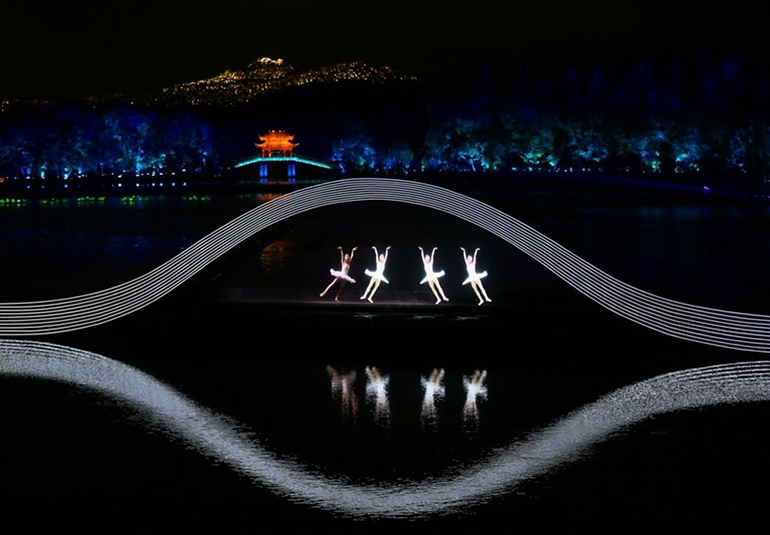 燈光是此次演出的一大亮點(diǎn),晚會(huì)總導(dǎo)演張藝謀說(shuō):“50分鐘的演出我們有100個(gè)以上的燈光變化,要靠燈光、湖水倒景、月色等方方面面?zhèn)鬟f出詩(shī)情畫(huà)意。”作為2008年北京奧運(yùn)會(huì)開(kāi)閉幕式燈光總設(shè)計(jì)、2014年APEC歡迎晚宴活動(dòng)燈光創(chuàng)意總監(jiān),此次G20峰會(huì)文藝演出的總制作人沙曉嵐,用燈光對(duì)西湖的山、水等自然元素進(jìn)行藝術(shù)再創(chuàng)作,勾勒一幅驚艷世界的視覺(jué)美景。