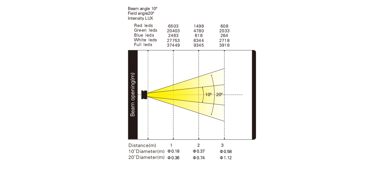 LED類(lèi)型:7顆10W RGBW四合一大功率LED