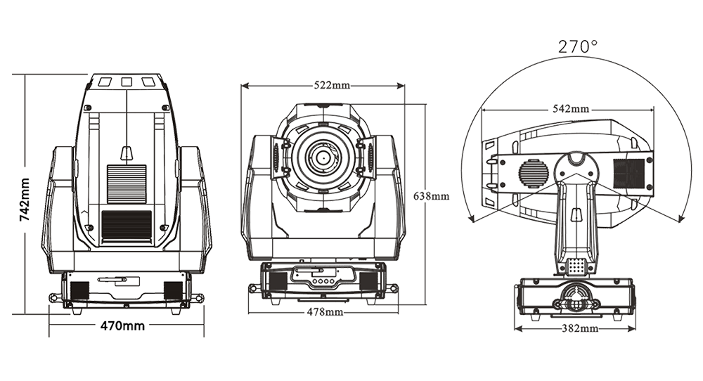 可從控臺(tái)完成更改DMX地址碼,遙控開(kāi)關(guān)燈泡,機(jī)器重設(shè),聲控模式的轉(zhuǎn)換等功能