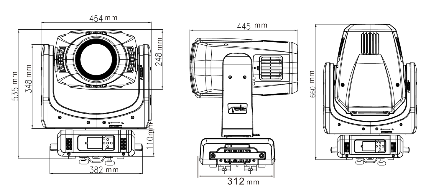 可從控臺完成更改DMX地址碼,機器重設等功能