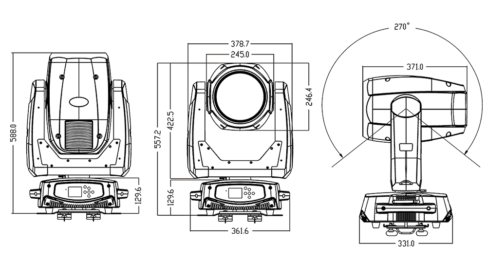 可從控臺完成更改DMX地址碼,遙控開關燈泡,機器重設,聲控模式的轉(zhuǎn)換等功能