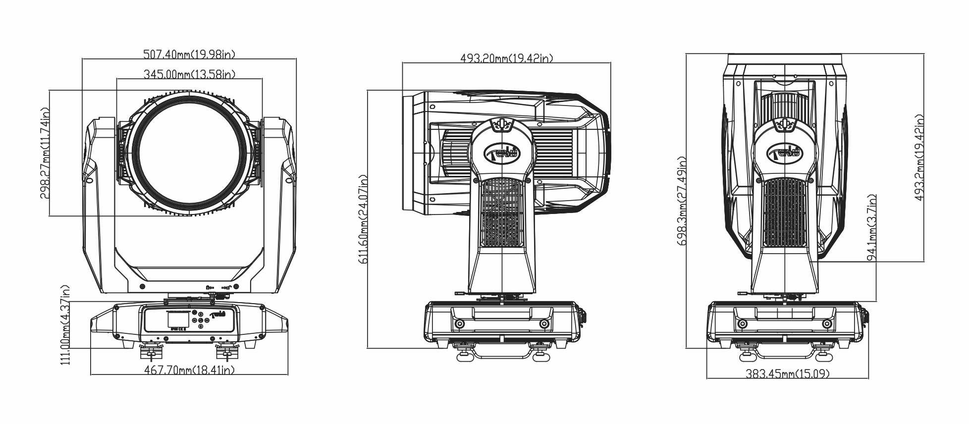 復(fù)位檢測(cè)設(shè)置:長(zhǎng)按左右鍵鎖住水平垂直掃描復(fù)位,可支持燈具在飛機(jī)箱內(nèi)即完成復(fù)位檢測(cè)