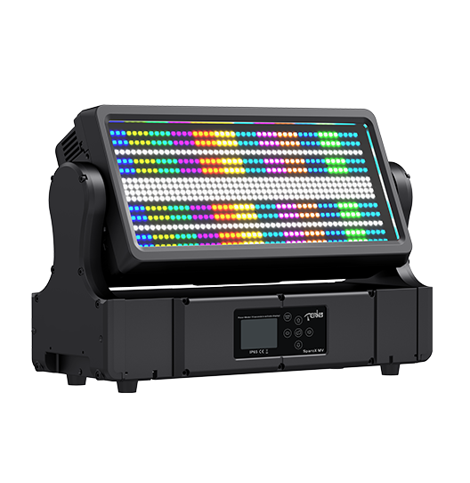集頻閃燈、染色燈和觀眾燈為一體,可做自由圖形矩陣效果,包含48個(gè)染色區(qū)塊和12x3個(gè)頻閃區(qū)塊