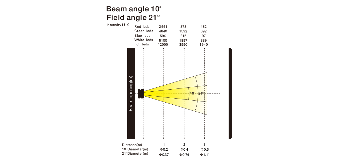 LED類型:8顆10W大功率RGBW 4合1 LED,達到均勻細膩的混色效果